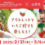 関東最大級のいちご狩りスポットとして知られる山武市成東エリア、いちご狩り17施設と酒々井プレミアム・アウトレットがタイアップ! 対象のいちご狩り施設をご利用の方は、2025年2月21日(金)~5月6日(火・休)の期間、アウトレット内インフォメーションセンターにて割引やサービスが受けられる「クーポン...